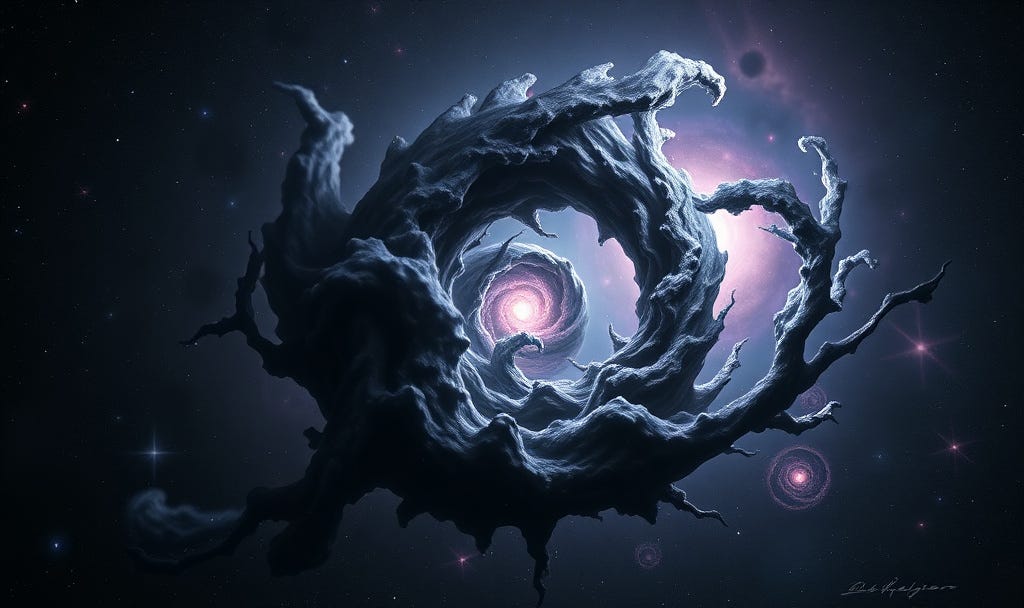 import React from ‘react’; import ‘./PromptDisplay.css’; // Assuming a CSS file for styling const CosmicEvolutionPrompt = () => { const promptText = ` A hyper-realistic, high-resolution digital painting of cosmic evolution. The central subject is a nebula-like structure, but instead of gas and dust, it is composed of swirling, intricate strands of dark matter and energy. Within this celestial cradle, faint, nascent galaxies and star systems are slowly beginning to coalesce, representing the early stages of universal evolution. The color palette is dominated by deep blacks, charcoal grays, and subtle hints of deep violet and indigo, with isolated points of brilliant, cold light from the forming stars. The style is detailed and complex, with a sense of immense scale and cosmic stillness. `; return ( <div className=”prompt-container”> <h1 className=”prompt-title”>Cosmic Evolution</h1> <pre className=”prompt-text”> {promptText} </pre> </div> ); }; export default CosmicEvolutionPromptELABs